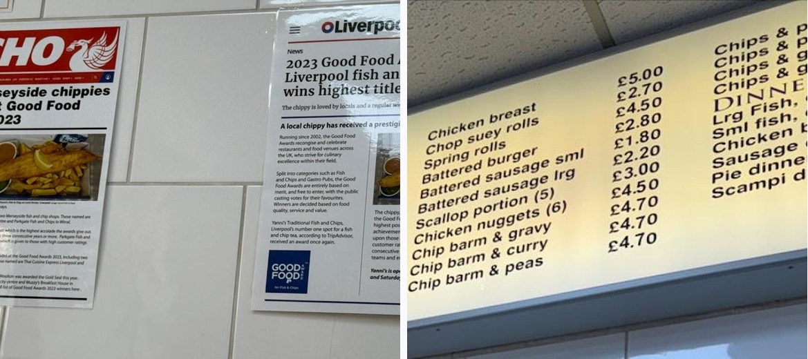 Yanni's stands out as the go-to place for fish and chips in Liverpool, renowned for winning the Good Food Awards for three consecutive years from 2020 to 2022. Located at 31-33 Lord St, Liverpool, this spot offers a casual dining experience where fresh and delicious fish meets perfectly cooked chips. The inviting atmosphere, friendly staff, and a diverse menu make it ideal for solo diners, families, and tourists alike. At Yanni's, quality doesn’t come at a high price—enjoy your meal for just £1 to £10, making it easy to indulge without breaking the bank.